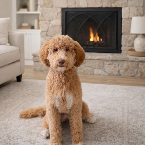 Luna is a medium-size multigenerational Goldendoodle. She lives with her wonderful guardian family.